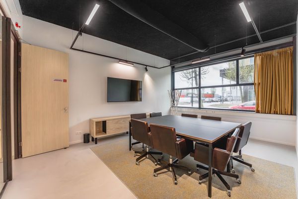 Wil je een waanzinnig idee pitchen aan collega's of (potentiële) klanten? In de vergaderruimte hangt een groot tv-scherm die gebruikt kan worden voor presentaties. Via een laptop kan jouw presentatie draadloos gecast worden naar tv, of hierop geprojecteerd worden via een HDMI-kabel. Heb je behoefte aan wat extra privacy? Sluit dan de geluidsdichte ruimte dan af met de verduisterende gordijnen.